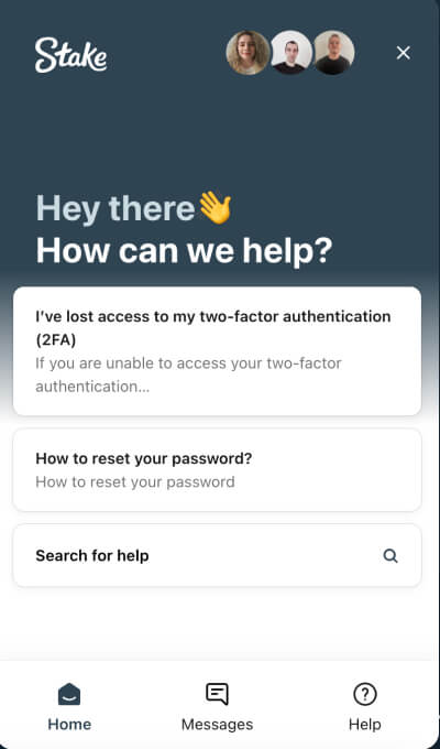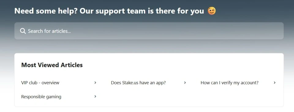 Stake.com — indicadores de confianza, soporte y acceso a contenidos